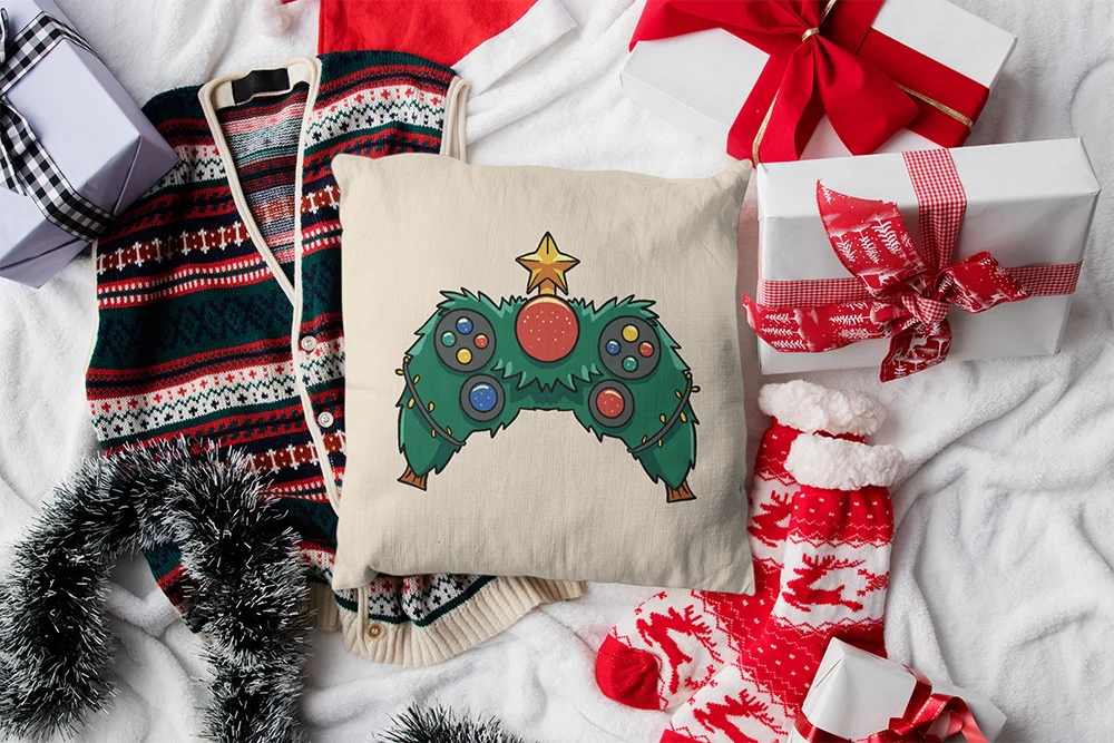 Bügelbild Gaming-Controller – festliches Motiv für Weihnachten Weihnachten für echte Gamer. Dieses Bügelbild zeigt einen detailreich gestalteten Gaming-Controller, der vollständig aus grünen Tannenzweigen besteht und mit weihnachtlicher Dekoration geschmückt ist. Kugeln, Lichter und festliche Details machen das Motiv zu einer originellen Mischung aus Gaming-Leidenschaft und Weihnachtszauber. Ein einzigartiges Design für Zocker, die Weihnachten feiern wollen – auf ihre Weise.Ob als witziges Detail auf einem Hoodie, als festlicher Akzent auf Shirts oder als Geschenkidee für Gaming-Fans – dieses Motiv ist perfekt für weihnachtliche Outfits mit Nerd-Faktor. Es verbindet Spaß am Zocken mit festlicher Stimmung und ist ein echter Hingucker auf jedem DIY-Projekt.Das Bügelbild ist hochwertig gedruckt, einfach auf Baumwollstoffe wie Shirts, Sweater, Hoodies, Taschen oder Kissenbezüge aufzubringen und bleibt bei richtiger Pflege lange farbintensiv und formstabil. Ein langlebiger Textiltransfer, der deine Liebe zu Gaming und Weihnachten gleichermaßen zeigt.Du willst noch mehr Bügelbilder mit weihnachtlichem Feeling entdecken? Dann wirf einen Blick auf unsere Winter-Kollektion – und finde dein nächstes Lieblingsmotiv!