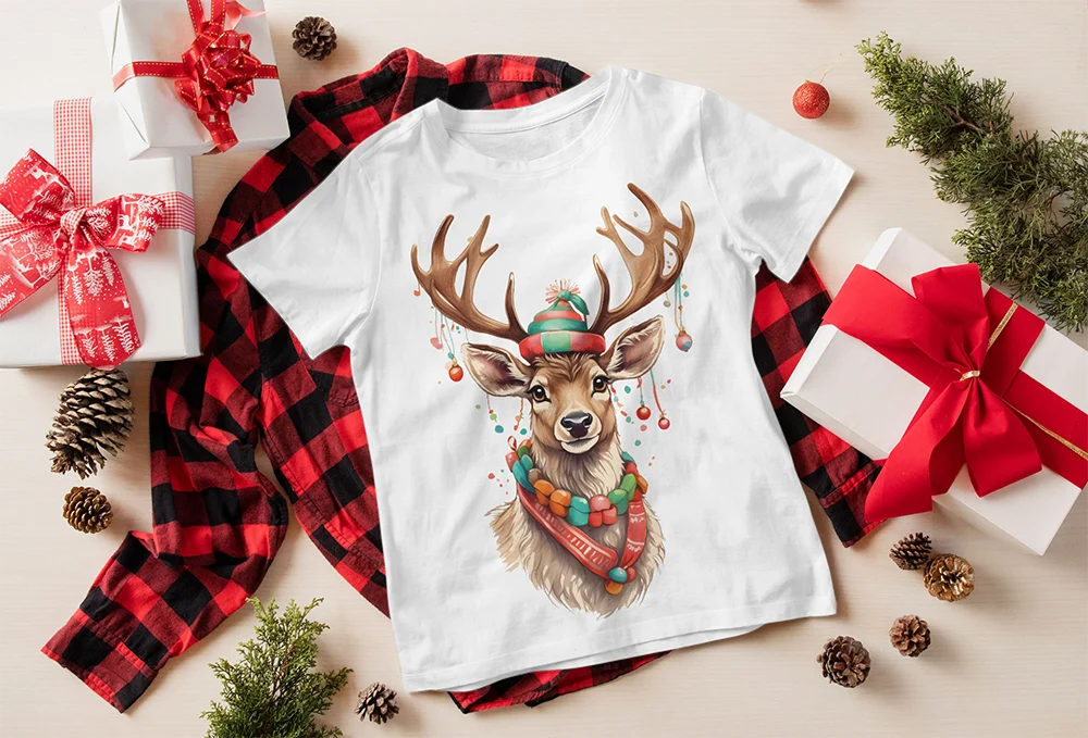 Bügelbild Rentier mit Lichterkette – festliches Weihnachtsmotiv Festlich, süß und voller Weihnachtszauber. Dieses Bügelbild zeigt ein Rentier, das von einer bunten Lichterkette umrahmt ist. Mit liebevollen Details und freundlichem Ausdruck bringt es sofort festliche Stimmung auf jedes Textil. Ein klassisches Weihnachtsmotiv, das Tierliebe und Lichterglanz vereint.Ob als Hingucker auf Shirts, als niedliches Detail auf Hoodies oder als dekorativer Akzent auf Stofftaschen – das Rentier mit Lichterkette ist perfekt für Weihnachtsoutfits und DIY-Geschenke. Ideal für Kinderkleidung, festliche Accessoires oder alle, die ihre Outfits in der Adventszeit aufpeppen möchten.Das Bügelbild ist hochwertig gedruckt, lässt sich ganz einfach auf Baumwollstoffe wie Shirts, Sweater, Hoodies, Taschen oder Kissenbezüge aufbringen und bleibt bei richtiger Pflege lange farbintensiv und formstabil. Ein langlebiger Textiltransfer, der deinem Outfit ein Stück Weihnachtsfreude verleiht.Du willst noch mehr Bügelbilder mit weihnachtlichem Feeling entdecken? Dann wirf einen Blick auf unsere Winter-Kollektion – und finde dein nächstes Lieblingsmotiv!