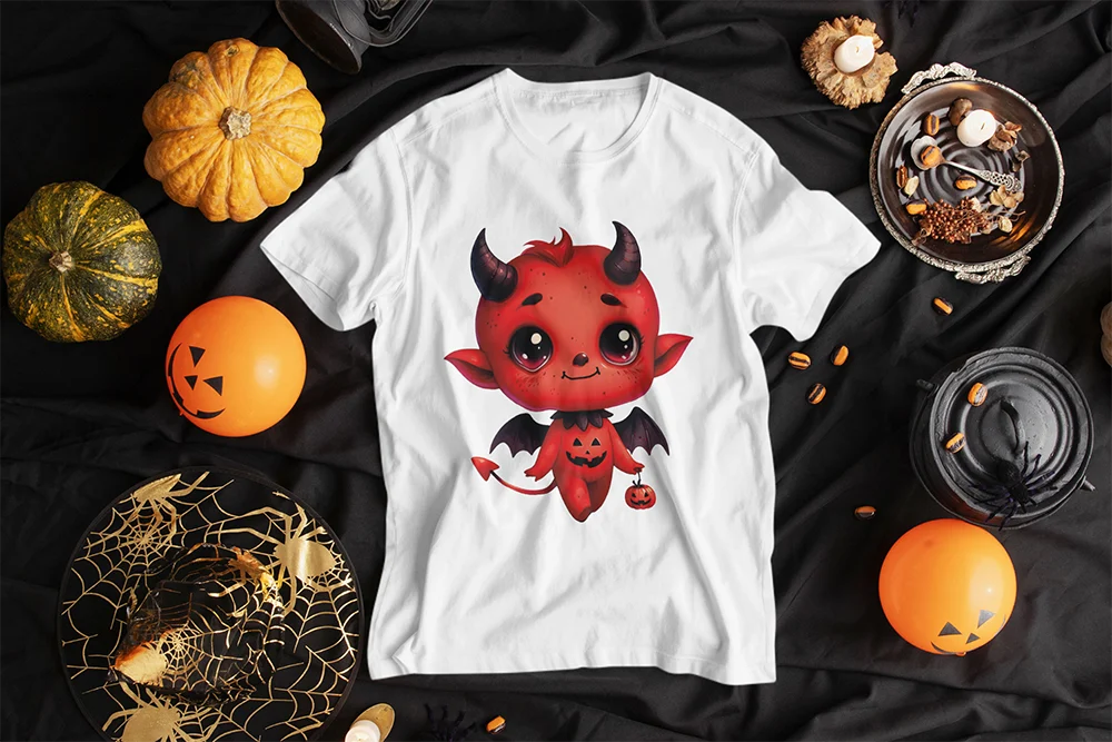 Bügelbild süßes Teufelchen – rotes Halloween-Motiv mit Flügeln, Kürbis & verspieltem Grusel-Charme Klein, rot und richtig verspielt. Dieses Bügelbild zeigt ein niedliches kleines Teufelchen in kräftigem Rot, mit glänzenden Augen, spitzen Ohren und einem freundlichen Lächeln. Schwarze Hörner, kleine Fledermausflügel und der typische Pfeilschwanz verleihen ihm den passenden Teufels-Look. Auf dem Outfit prangt ein Kürbisgesicht, das den Halloween-Charakter unterstreicht.In seiner Hand hält das Teufelchen einen kleinen Kürbis-Eimer, wie man ihn zum Süßigkeitensammeln kennt. Ein charmantes Motiv, das Grusel mit Niedlichkeit verbindet – perfekt für Kinder, Teenager und alle, die Halloween mit einem Augenzwinkern feiern möchten. Ob auf Shirts, Hoodies oder Taschen, dieses Motiv sorgt garantiert für Lächeln.Das Bügelbild ist hochwertig gedruckt, lässt sich einfach auf Baumwollstoffe wie Shirts, Sweater, Hoodies, Stofftaschen oder Kissenbezüge aufbringen und bleibt bei richtiger Pflege lange farbintensiv und formstabil. Ein langlebiger Textiltransfer, der jedes Outfit in ein süßes Halloween-Statement verwandelt.Du willst noch mehr Bügelbilder mit Monstern, Vampiren und dem Hauch von Apokalypse entdecken? Dann wirf einen Blick auf unsere Horror-Kollektion – und finde dein nächstes Lieblingsmotiv!