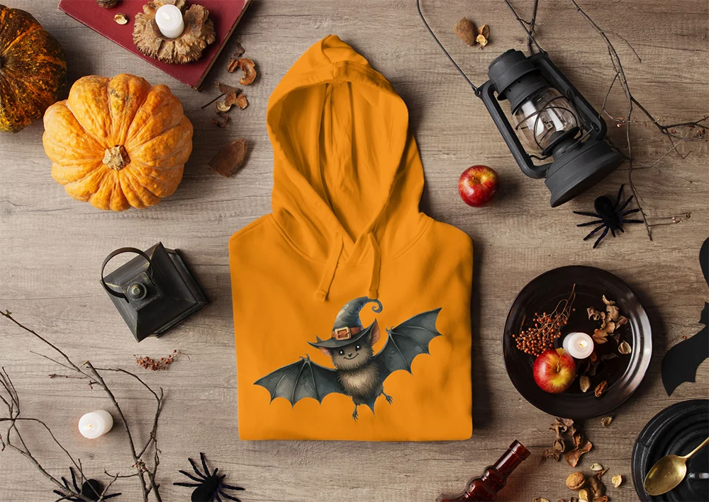 Bügelbild Fledermaus mit Hexenhut – niedliches Halloween-Motiv für Shirts, Hoodies & Taschen Schaurig süß und voller Magie. Dieses Bügelbild zeigt eine kleine Fledermaus, die stolz einen spitzen Hexenhut trägt. Mit großen Augen, flatternden Flügeln und einem niedlichen Gesichtsausdruck verbindet das Motiv klassischen Halloween-Charme mit einer humorvollen, verspielten Note. Ein perfektes Design für Kinder und Erwachsene, die Halloween lieben.Ob als witziges Detail auf Shirts, als süßer Akzent auf Hoodies oder als originelles Highlight auf Taschen – die Fledermaus mit Hexenhut ist ideal für Halloween-Partys, Kostüme oder DIY-Geschenke. Sie passt perfekt zu gruseligen, aber zugleich niedlichen Outfits und sorgt garantiert für ein Lächeln.Das Bügelbild ist hochwertig gedruckt, lässt sich leicht auf Baumwollstoffe wie Shirts, Sweater, Hoodies, Stofftaschen oder Kissenbezüge aufbringen und bleibt bei richtiger Pflege lange farbintensiv und formstabil. Ein langlebiger Textiltransfer, der jedes Textil in ein zauberhaftes Halloween-Statement verwandelt.Du willst noch mehr Bügelbilder mit Hexen, Vampiren und dem Hauch von Apokalypse entdecken? Dann wirf einen Blick auf unsere Horror-Kollektion – und finde dein nächstes Lieblingsmotiv!