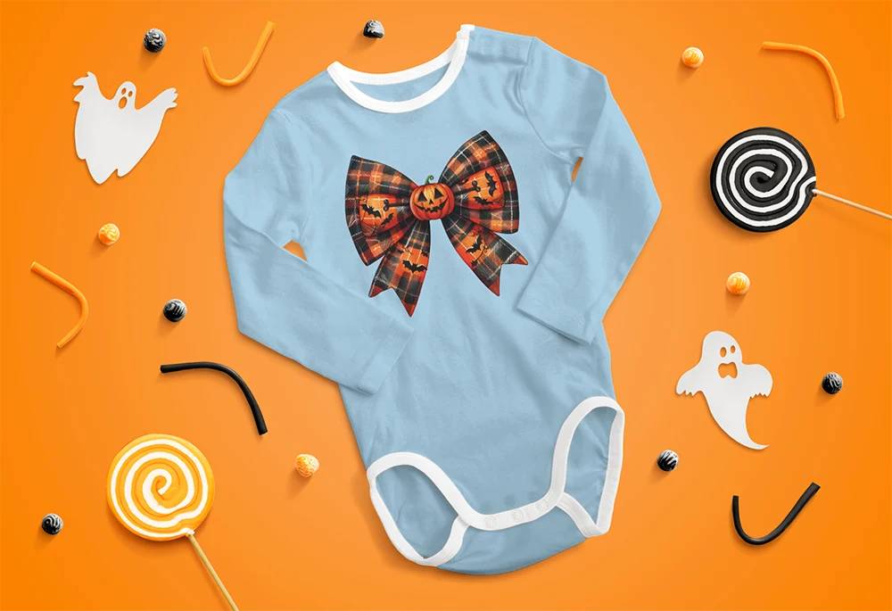 Bügelbild Halloween-Schleife – schwarz-orange kariertes Motiv mit Fledermäusen für gruselige Outfits & Accessoires Klassisch gruselig und zugleich verspielt. Dieses Bügelbild zeigt eine große Schleife im schwarz-orange karierten Muster – dekoriert mit flatternden Fledermäusen. Die Farbgestaltung und die Halloween-typischen Details machen das Motiv zum perfekten Begleiter für die gruseligste Zeit des Jahres. Ein Design, das Charme und Grusel perfekt verbindet.Ob als Eyecatcher auf Shirts, als festlicher Akzent auf Hoodies oder als dekoratives Detail auf Taschen – die Halloween-Schleife passt perfekt zu Partys, Kostümlooks oder DIY-Projekten mit saisonalem Flair. Ideal auch für Kinder-Outfits oder kreative Designs, die einen verspielten, aber klaren Bezug zu Halloween setzen wollen.Das Bügelbild ist hochwertig gedruckt, lässt sich problemlos auf Baumwollstoffe wie Shirts, Sweater, Hoodies, Stofftaschen oder Kissenbezüge aufbringen und bleibt bei richtiger Pflege lange farbintensiv und formstabil. Ein langlebiger Textiltransfer, der deine Textilien in echte Halloween-Highlights verwandelt.Du willst noch mehr Bügelbilder mit Hexen, Vampiren und dem Hauch von Apokalypse entdecken? Dann wirf einen Blick auf unsere Horror-Kollektion – und finde dein nächstes Lieblingsmotiv!