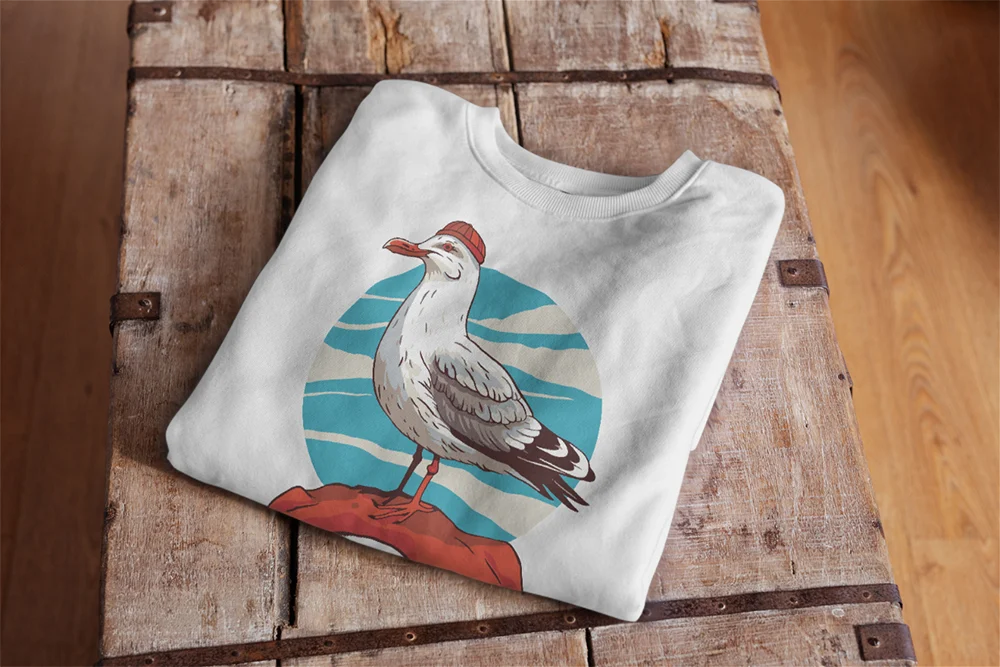 Bügelbild Möwe mit Mütze – maritimes Motiv mit HumorFrech, maritim und ein bisschen eigensinnig. Dieses Bügelbild zeigt eine Möwe mit einer stylischen Mütze, die sofort für gute Laune sorgt. Mit ihrem typischen, etwas grimmigen Möwenblick und dem ungewöhnlichen Accessoire verbindet das Motiv Humor mit Küsten-Charme. Ein Design, das auffällt und maritime Vibes auf dein Textil bringt.Ob als witziges Detail auf Shirts, als origineller Akzent auf Hoodies oder als Eyecatcher auf Taschen – die Möwe mit Mütze ist perfekt für alle, die den maritimen Look mit einer Prise Humor mögen. Ideal für Küstenkinder, Ostsee- und Nordseefans oder einfach für Menschen, die Möwen genauso lieben wie ihre Eigenarten.Das Bügelbild ist hochwertig gedruckt, leicht auf Baumwollstoffe wie Shirts, Sweater, Hoodies, Stofftaschen oder Kissenbezüge aufzubringen und bleibt bei richtiger Pflege lange farbintensiv und formstabil. Ein langlebiger Textiltransfer, der maritimen Humor und Individualität in deine Outfits bringt.Du willst noch mehr maritime Bügelbilder mit Bezug zur See und dem Meer entdecken? Dann wirf einen Blick auf unsere Meeres-Kollektion – und finde dein nächstes Lieblingsmotiv!