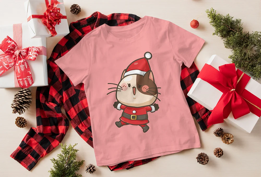 Bügelbild Weihnachtskatze – niedliches Santa-Katzenmotiv für fröhliche Festtags-Outfits Festlich, verspielt und einfach zum Verlieben. Dieses Bügelbild zeigt eine niedliche Katze im Cartoon-Stil, die ein komplettes Weihnachtsmann-Outfit trägt. Mit roter Mütze, Santa-Anzug und rosa Bäckchen wirkt sie fröhlich, überrascht und voller Weihnachtsfreude. Ein Motiv, das sofort gute Laune und Festtagsstimmung verbreitet.Die leicht schräg dargestellte Pose und der offene Mund verleihen der Katze einen lebendigen, verspielten Ausdruck. Perfekt für Katzenfans, Kinder und alle, die Weihnachten mit Humor und Niedlichkeit feiern möchten. Ob als Hingucker auf Shirts, als süßes Detail auf Hoodies oder als festlicher Akzent auf Taschen – diese Weihnachtskatze sorgt garantiert für ein Lächeln.Das Bügelbild ist hochwertig gedruckt, lässt sich mühelos auf Baumwollstoffe wie Shirts, Sweater, Hoodies, Stofftaschen oder Kissenbezüge aufbringen und bleibt bei richtiger Pflege lange farbintensiv und formstabil. Ein langlebiger Textiltransfer, der winterliche Outfits mit tierischem Charme und Weihnachtszauber veredelt.Du willst noch mehr Bügelbilder mit winterlichen und weihnachtlichen Motiven entdecken? Dann wirf einen Blick auf unsere Winter-Kollektion – und finde dein nächstes Lieblingsmotiv!