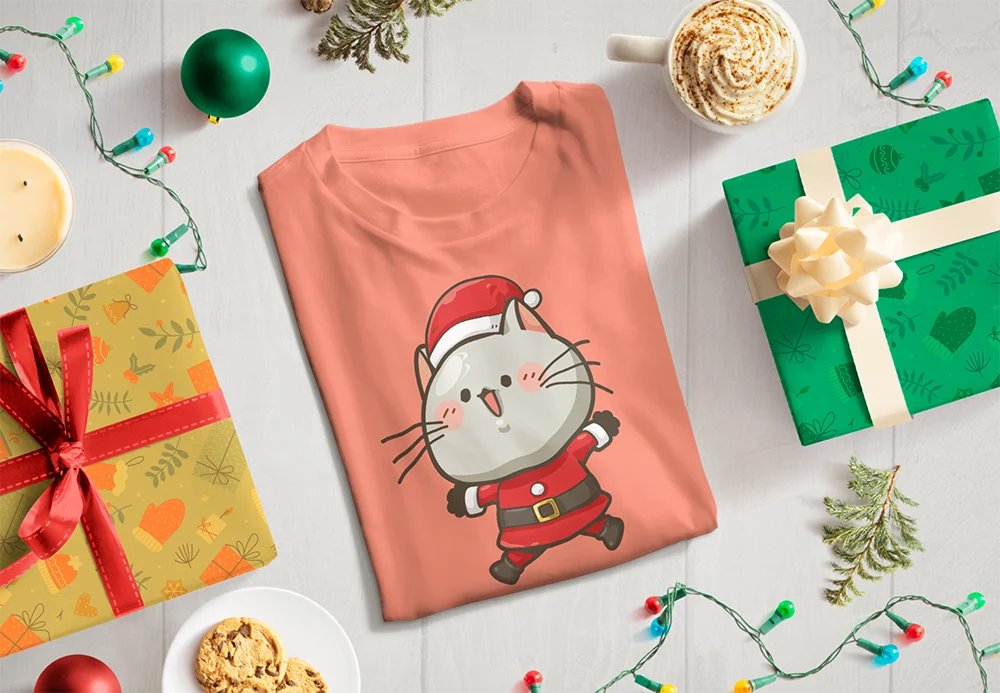 Bügelbild Weihnachtskatze – niedliches Santa-Katzenmotiv für fröhliche Festtags-Outfits Festlich, verspielt und einfach zum Verlieben. Dieses Bügelbild zeigt eine niedliche Katze im Cartoon-Stil, die ein komplettes Weihnachtsmann-Outfit trägt. Mit roter Mütze, Santa-Anzug und rosa Bäckchen wirkt sie fröhlich, überrascht und voller Weihnachtsfreude. Ein Motiv, das sofort gute Laune und Festtagsstimmung verbreitet.Die leicht schräg dargestellte Pose und der offene Mund verleihen der Katze einen lebendigen, verspielten Ausdruck. Perfekt für Katzenfans, Kinder und alle, die Weihnachten mit Humor und Niedlichkeit feiern möchten. Ob als Hingucker auf Shirts, als süßes Detail auf Hoodies oder als festlicher Akzent auf Taschen – diese Weihnachtskatze sorgt garantiert für ein Lächeln.Das Bügelbild ist hochwertig gedruckt, lässt sich mühelos auf Baumwollstoffe wie Shirts, Sweater, Hoodies, Stofftaschen oder Kissenbezüge aufbringen und bleibt bei richtiger Pflege lange farbintensiv und formstabil. Ein langlebiger Textiltransfer, der winterliche Outfits mit tierischem Charme und Weihnachtszauber veredelt.Du willst noch mehr Bügelbilder mit winterlichen und weihnachtlichen Motiven entdecken? Dann wirf einen Blick auf unsere Winter-Kollektion – und finde dein nächstes Lieblingsmotiv!