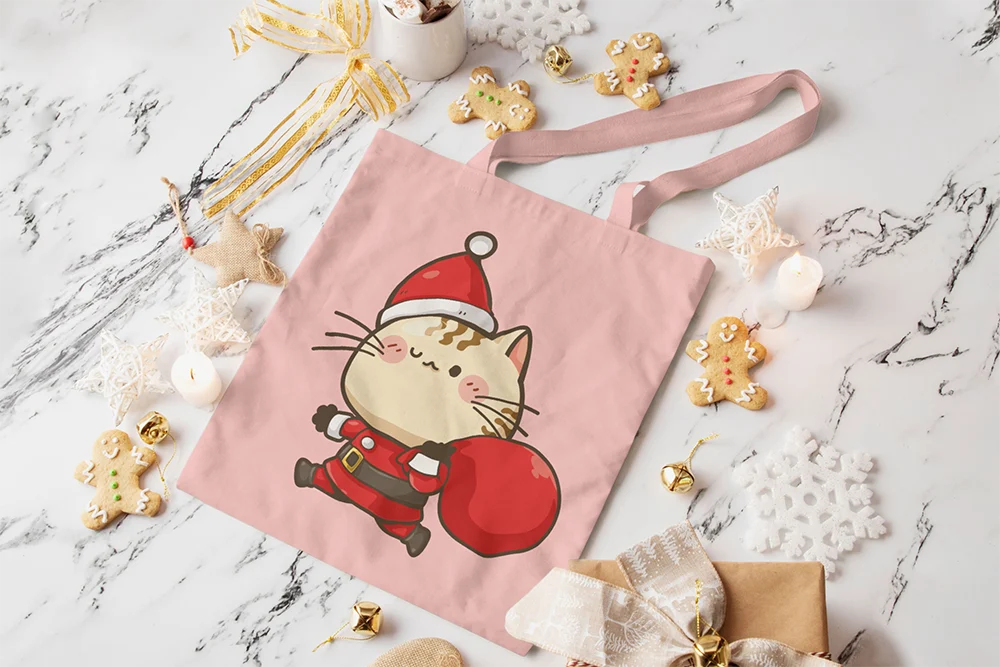 Bügelbild Weihnachtskatze mit Geschenkesack – verspieltes Santa-Katzenmotiv für festliche Outfits Festlich, niedlich und voller Weihnachtszauber. Dieses Bügelbild zeigt eine süße Katze im Cartoon-Stil, die als kleiner Weihnachtshelfer unterwegs ist. Mit roter Santa-Mütze, klassischem Weihnachtsmann-Outfit und einem großen roten Geschenkesack wirkt sie fröhlich, fleißig und absolut herzerwärmend. Die rosa Bäckchen und der sanfte Gesichtsausdruck unterstreichen den verspielten Charakter des Motivs.Die laufende Pose verleiht der Katze Dynamik, als wäre sie gerade auf dem Weg, Geschenke zu verteilen. Ein perfektes Motiv für Katzenfans, Kinder und alle, die Weihnachten mit Humor, Niedlichkeit und einer Portion Charme feiern möchten. Ideal für winterliche Looks, festliche Outfits oder liebevolle Geschenkideen.Das Bügelbild ist hochwertig gedruckt, lässt sich leicht auf Baumwollstoffe wie Shirts, Sweater, Hoodies, Stofftaschen oder Kissenbezüge aufbringen und bleibt bei richtiger Pflege lange farbintensiv und formstabil. Ein langlebiger Textiltransfer, der Weihnachtsfreude und tierischen Charme auf jedes Textil bringt.Du willst noch mehr Bügelbilder mit winterlichen und weihnachtlichen Motiven entdecken? Dann wirf einen Blick auf unsere Winter-Kollektion – und finde dein nächstes Lieblingsmotiv!
